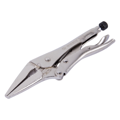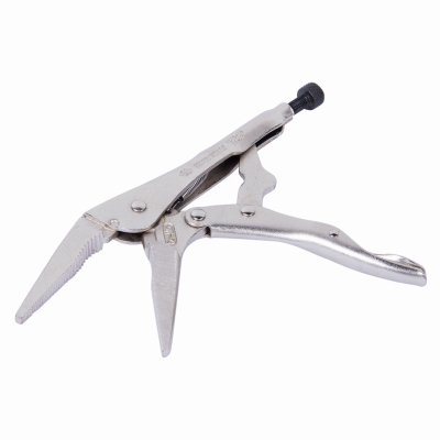 Зажим с прямыми тонконосыми губками увеличенной глубины. Предназначен для захвата и усиленного фиксирования металлических изделий при проведении сварочных работ. Регулировочный винт позволяет подобрать необходимую толщину. Изготовлен из хромомолибденовой стали. Выдержит повышенные профессиональные нагрузки.