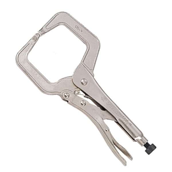 Зажим с фиксатором для удержания металлических листов и изделий при проведении сварочных работ. Наделен увеличенным С-образным зевом для захвата крупных деталей. Регулировочный винт помогает подобрать необходимый размер и усилие. Препятствует скольжению. Применяется в автосервисах и мастерских.