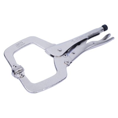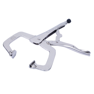 Зажим С-образной формы с максимальной глубиной захвата 90 мм. Наделен подвижными окончаниями губок на шарнире. Используется при проведении сварочных работ для зажатия и удержания металлических изделий. Способен выдержать повышенные профессиональные нагрузки.
