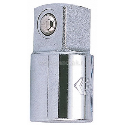 Переходник с присоединительным квадратом 1/4″ позволяет работать со стандартными торцевыми головками размером 3/8″, благодаря шариковому фиксатору, изделие позволяет соединять и надёжно удерживать торцевые головки в тех случаях, когда они отличаются от размеров посадочных квадратов используемых инструментов (воротков и шуруповёртов). Прочный металлический сплав позволяет использовать переходник при ударных нагрузках.