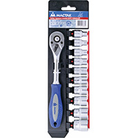 Набор торцевых головок МАСТАК с трещоткой 1/4, 4-13 мм, 11 предметов