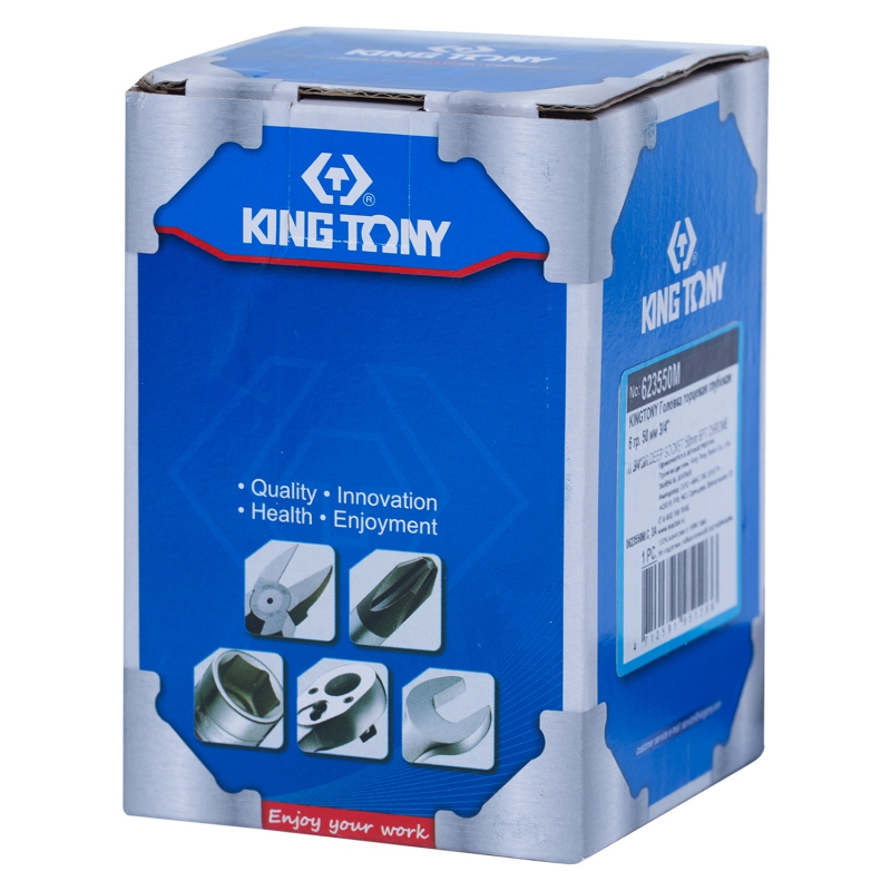 Глубокая торцевая головка King Tony не заменима для работы с труднодоступными крепежными элементами удлиненной формы. Широко применяется на станциях техобслуживания и в автомастерских. Обладает устойчивостью к износу и механическим повреждениям. Имеет длительный срок эксплуатации. Изделие изготовлено из инструментальной хромованадиевой стали, не подверженной коррозии.