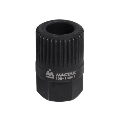 Специальная торцевая головка для снятия и установки шкива генератора. Предназначена для ремонтных работ в двигателе автомобилей группы VAG. Размер для работы совместно с ключом - 17 мм. Материал изготовления - инструментальная сталь. Возможно применение при повышенных нагрузках на СТО.