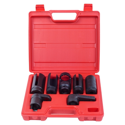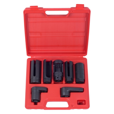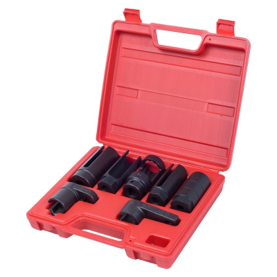 Комплект разрезных головок из инструментальной стали с оксидированным покрытием состоит из семи изделий в пластмассовом чемодане, предназначенных для демонтажа (монтажа) датчиков остаточного кислорода и форсунок различной конфигурации в автомобильных двигателях. Эксплуатируется на объектах профессионального автосервиса (СТО, автомастерские, сервисные центры) и в личных гаражах.