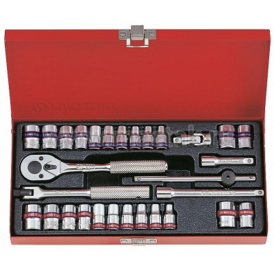 Набор торцевых головок с принадлежностями King Tony 1/4″, 12-гранные, 4-12 мм, 5/32-1/2, 30 предметов