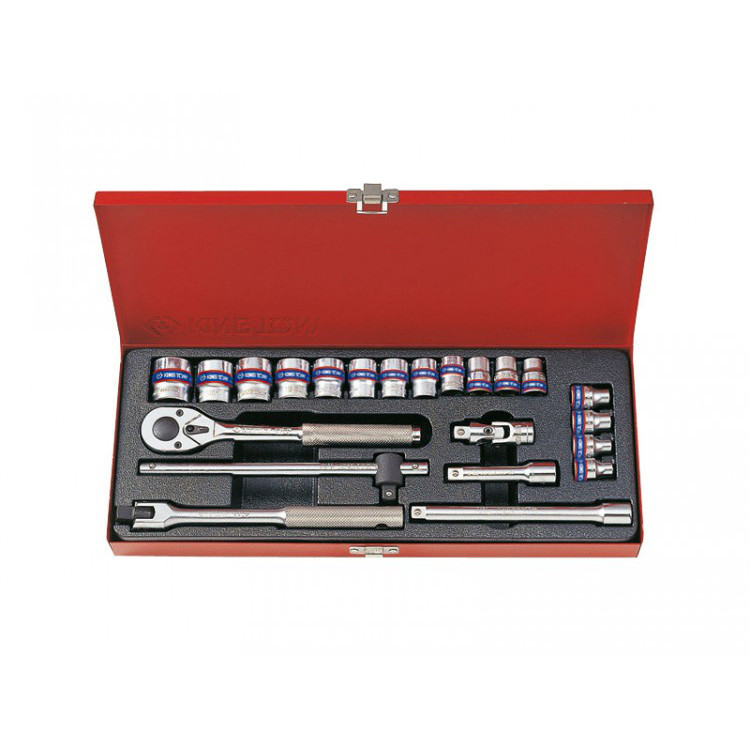 Известный производитель King Tony представляет набор шестигранных торцевых головок размером от 16 до 22 мм. Кроме того, в комплект поставки входит кардан, воротки, удлинители, трещотка флажковая. Материал всех инструментов – высокопрочный металл, что гарантирует долгую службу без деформации. Удобный кейс с замком убережет элементы набора от пыли и облегчит хранение.