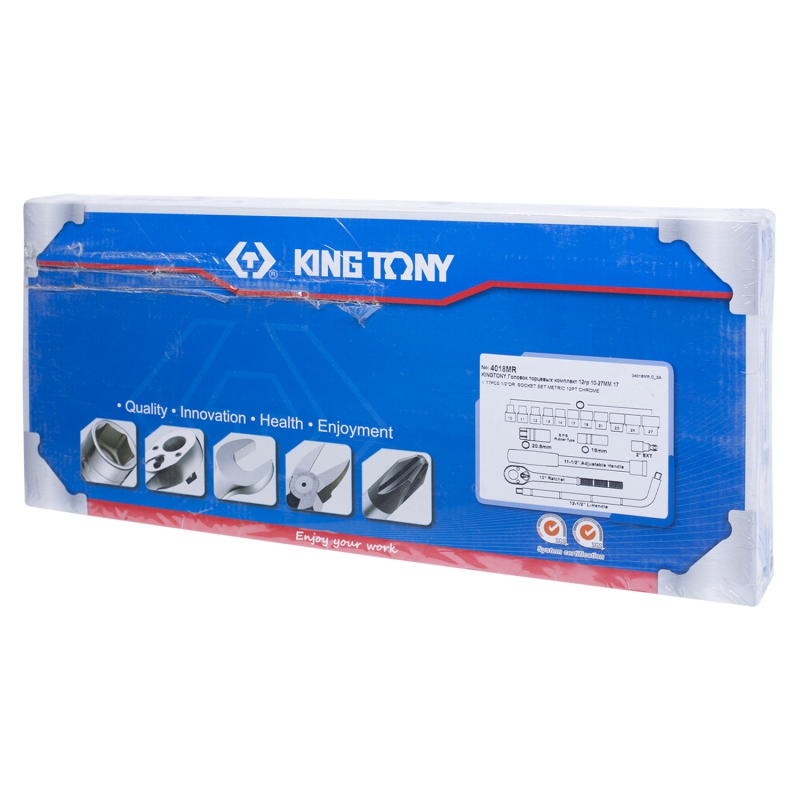Набор торговой марки King Tony используется при проведении ремонтных и слесарных работ в автомастерской и на станции ТО. В комплект входят торцевые головки, удлиняемая трещотка с флажковым фиксатором, L-образный вороток, удлинитель, телескопический рычаг-труба, 6-ти и 12-гранная свечные головки. Изделия выполнены из легированной стали с антикоррозионным покрытием. Для хранения предусмотрен металлический футляр.