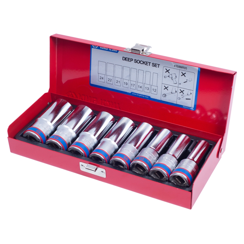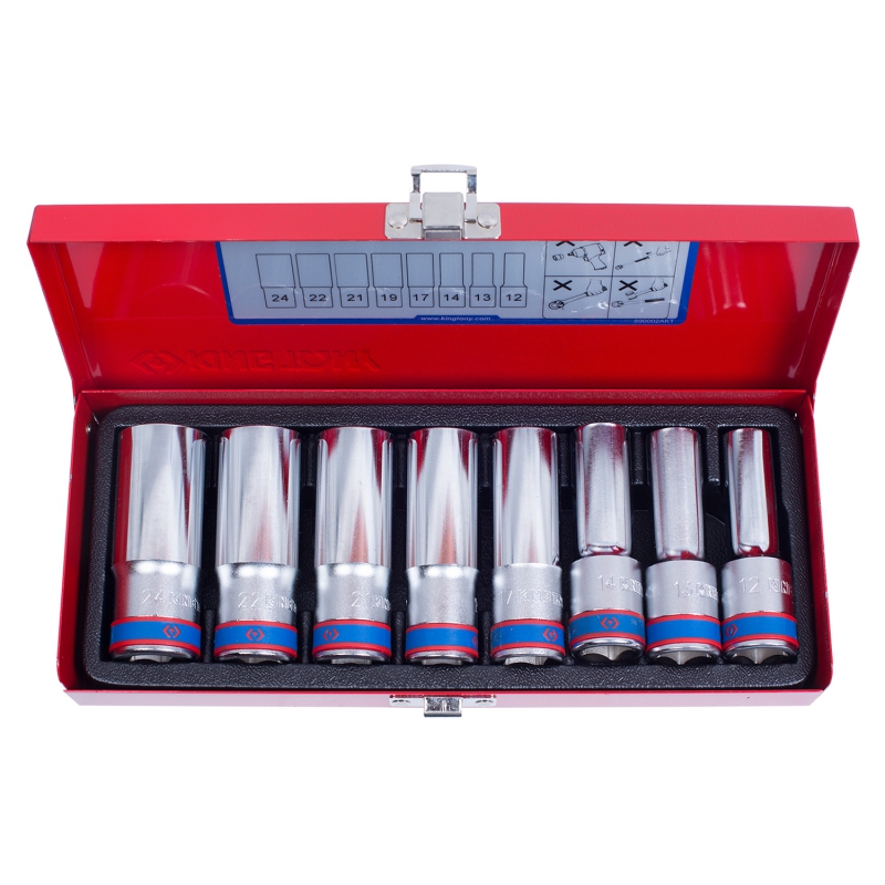Набор глубоких торцевых головок 1/2, шестигранные, 12-24 мм, 8 предметов