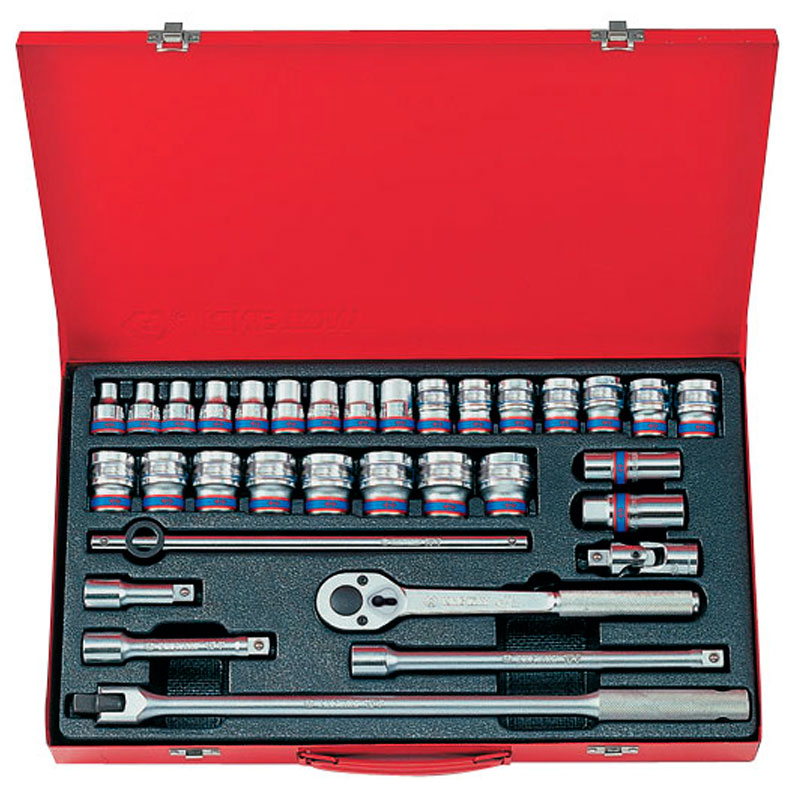 Набор известного бренда King Tony широко применяется при проведении ремонтных и слесарно-монтажных работ. Основная сфера использования – производство, автосервисы и мастерские. В комплект входят торцевые 6-гранные головки, три удлинителя, трещотка с флажковым переключателем, кардан, две свечные головки, скользящий и шарнирный воротки, а также металлический кейс для хранения. Инструменты изготовлены из высокопрочной легированной стали с защитным хромированным покрытием.