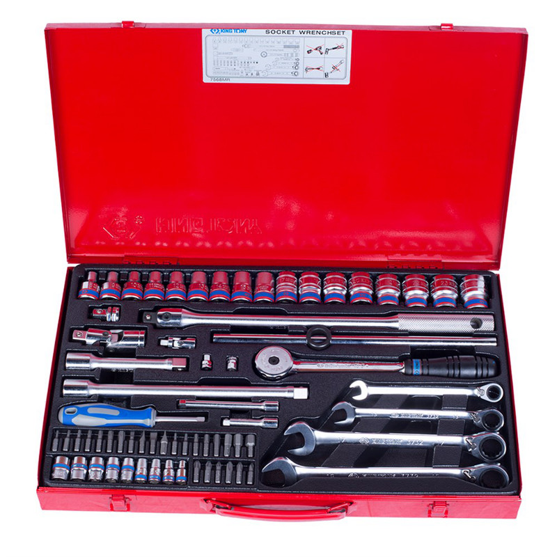 King Tony представляет большой набор для любительского или профессионального авторемонта. В комплекте имеются торцевые головки, насадки разных типов, переходники, ключи, кардан, трещотка, вороток. Инструменты, изготовленные из прочных материалов, будут полезны в гараже, мастерской, на производстве. Элементы упакованы в удобный металлический кейс, их можно преподнести мастеру в подарок.