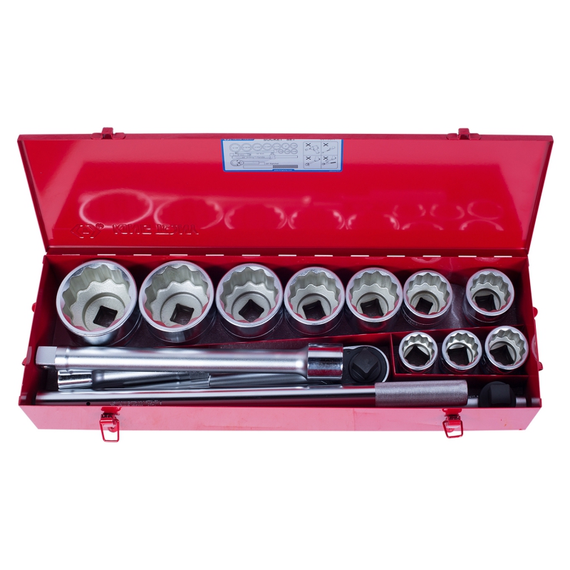 Набор торцевых головок с принадлежностями 1″, двенадцатигранные, 36-80 мм, 14 предметов, King Tony