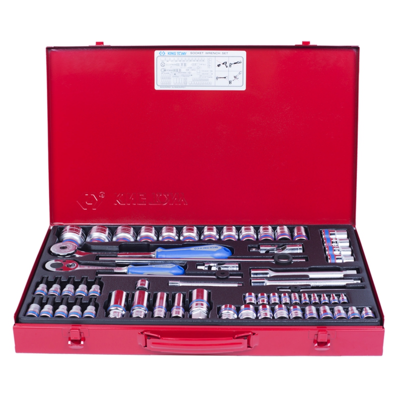 Набор торцевых головок с принадлежностями 1/4″, 3/8″, 1/2″, двенадцатигранные, 4-32 мм, 62 предмета, King Tony