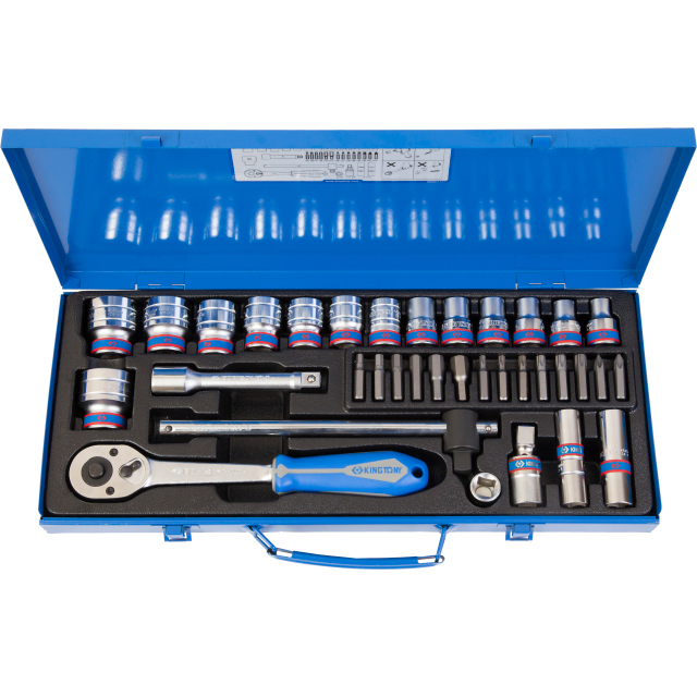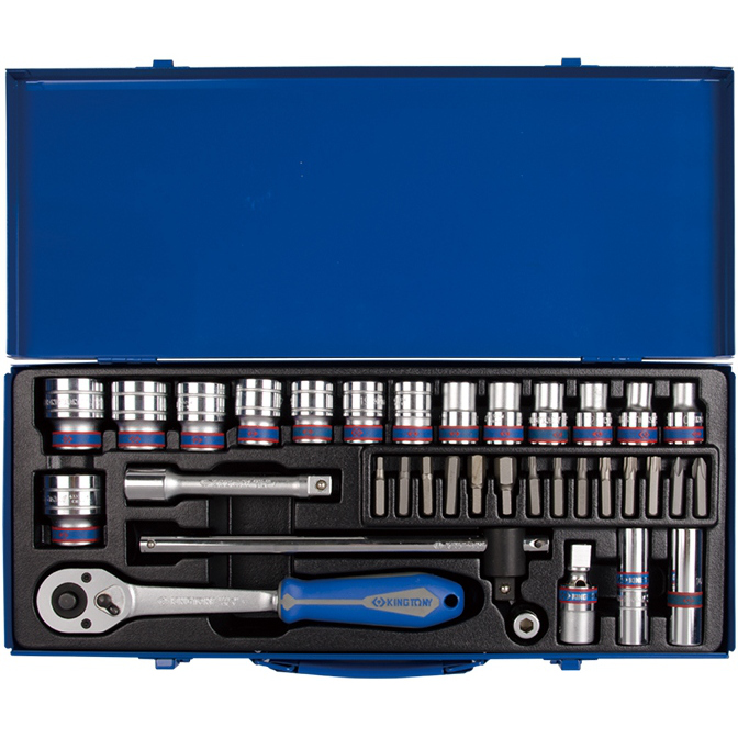 Набор торцевых головок с принадлежностями 1/2″, 12-гранные, 10-32 мм, 35 предметов (King Tony)