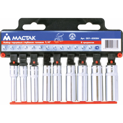 Набор глубоких торцевых головок МАСТАК 1/4, 5-13 мм, 9 предметов