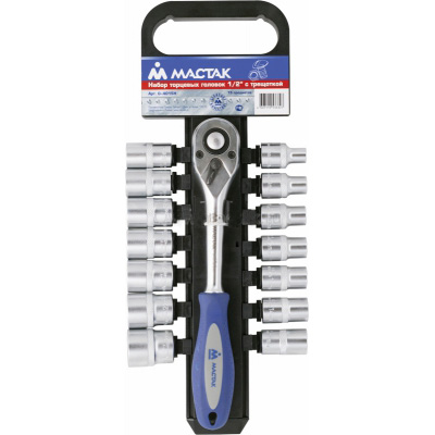 Набор торцевых головок МАСТАК с трещоткой 1/2, 8-24 мм, 15 предметов
