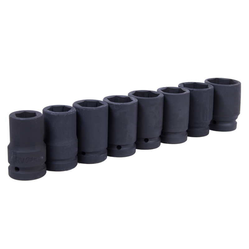 Набор глубоких торцевых головок 1″, шестигранные, 24-41 мм, для мультипликатора, 8 предметов, МАСТАК