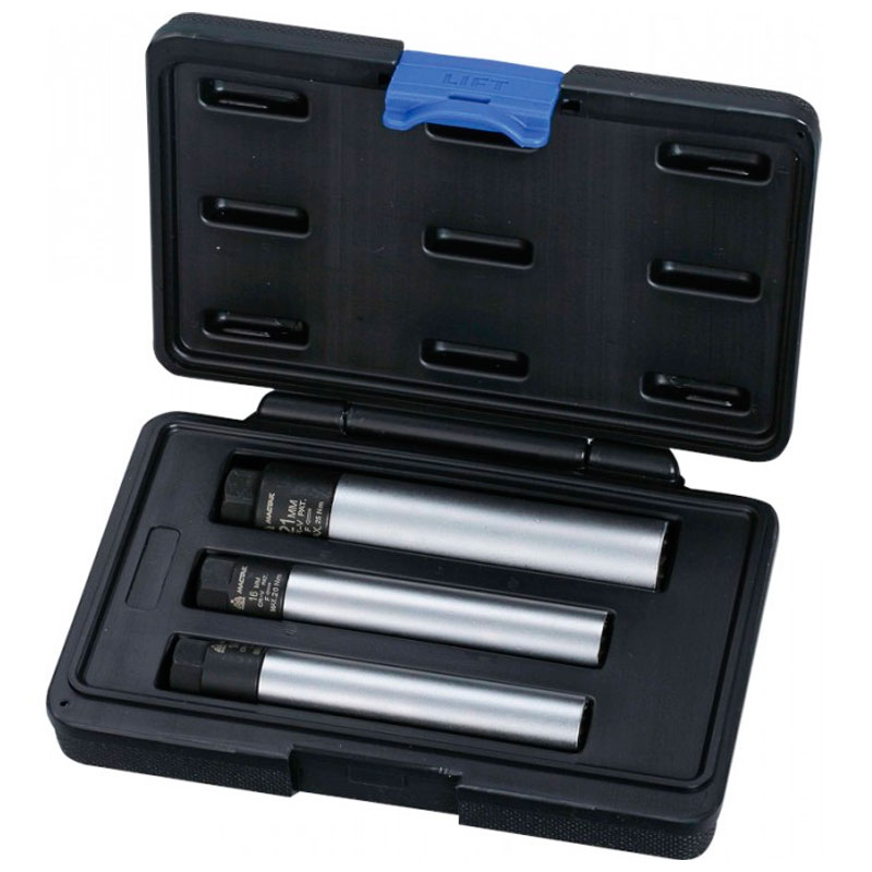 Набор известного производителя Мастак состоит из трех свечных головок с двенадцатигранным профилем. Изделия выполнены из высокопрочной, устойчивой к износу стали. Имеют фиксированное усилие затяжки. Закрывающийся пластиковый кейс обеспечивает удобство хранения и транспортировки.