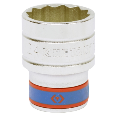 Головка торцевая King Tony размером 24 мм имеет посадочный квадрат 1/2″ и внутренний профиль из 12 граней, используется для слесарных, монтажных и ремонтных работ в автосервисе, на производстве или в быту. Эксплуатируется совместно с трещоткой, динамометрическим ключом или воротком для затяжки и снятия крепёжных деталей подходящего профиля (гаек, болтов, винтов, шпилек).
