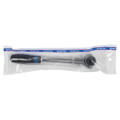 Трещотка King Tony оснащена дисковым механизмом с 72 зубцами, посадочным квадратом 3/8″, длина изделия 230 мм. Особенностью данного инструмента является поворотная головка, которая позволяет удобно работать из любого положения, позволяя при этом экономить время и усилия. Трещотка используется для затяжки и демонтажа крепёжных деталей при обслуживании малых и средних механических изделий.