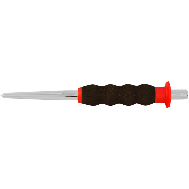 Прочный кернер King Tony с диаметром рабочей части 2,5 мм удобен для нанесения неглубокой разметки на металл. Боек выполнен из стального сплава с молибденом, что существенно повышает стойкость металла к ударным нагрузкам. Ручка инструмента мягкая и комфортная для удерживания, резина в составе материала предохраняет ладонь мастера от отдачи во время удара.