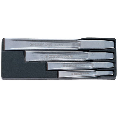 Зубило - ударно-режущий инструмент, используемый в качестве клина для подготовки каналов и бороздок при работе с камнем, металлом или деревом. Приводится в действие ударом молотка или кувалды по бойковой части. Набор King Tony состоит из четырёх зубил разного размера (125, 150, 200, 250 мм) и металлической подставки. Набор используется для демонтажных, столярных и слесарных работ на производстве и в домашнем хозяйстве.