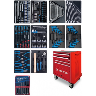 Набор инструментов King Tony в красной тележке, 173 предмета, навесные панели в подарок