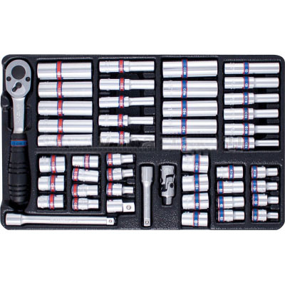 Набор King Tony практически незаменим при осуществлении ремонтных, слесарных или механосборочных работ на производстве или в частном хозяйстве, широко применяется на СТО, в мастерских и автосервисах. Включает в себя 43 торцевых головки с посадочным размером 1/4 дюйма, трещотку, удлинители, кардан и переходник. Ложемент предназначен для размещения в инструментальных ящиках арт. 87411-6B и 511-06570. <\p>