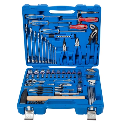 - Состав - Торцевые головки и принадлежности, Ключи, Отвертки и шестигранники, Шарнирно-губцевый инструмент, Вставки (биты), Вспомогательный инструмент, Ударный инструмент