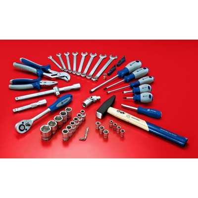 - Состав - Торцевые головки и принадлежности, Ключи, Отвертки и шестигранники, Шарнирно-губцевый инструмент, Вставки (биты), Ударный инструмент