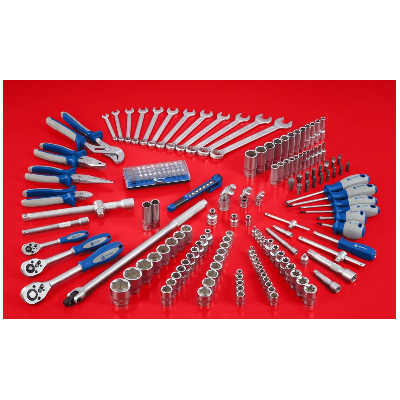 - Состав - Торцевые головки и принадлежности, Ключи, Отвертки и шестигранники, Шарнирно-губцевый инструмент, Вставки (биты), Вспомогательный инструмент, Режущий инструмент