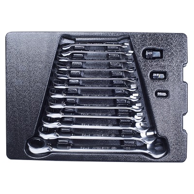 Набор комбинированных ключей для комплектации инструментальной тележки. Инструменты наделены открытым и закрытым захватом. Предназначены для работы с резьбовыми соединениями различной сложности. Изготовлены из хром-ванадиевой стали методом высокотемпературной обработки. Возможно применение на СТО и в мастерских.