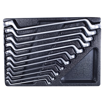 Набор накидных ключей для инструментальной тележки. Поставляется в ложементе из ПВХ. Используется при работе с резьбовыми соединениями. Инструменты обеспечивают доступ к углубленным креплениям в труднодоступных местах. Изготовлены из прочной хром-ванадиевой стали. Применяются в автомобильных и ремонтных мастерских.