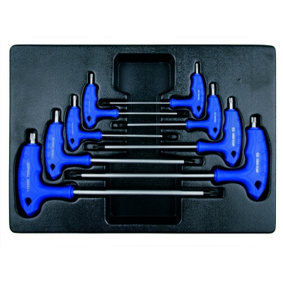 Набор L-образных ключей с профилем TORX из 8 предметов. Предназначен для комплектования инструментальной тележки. Инструменты наделены эргономичной рукоятью для удобства работы. Изготовлены из легированной стали методом высокотемпературной обработки. Возможно применение в автосервисах и мастерских.