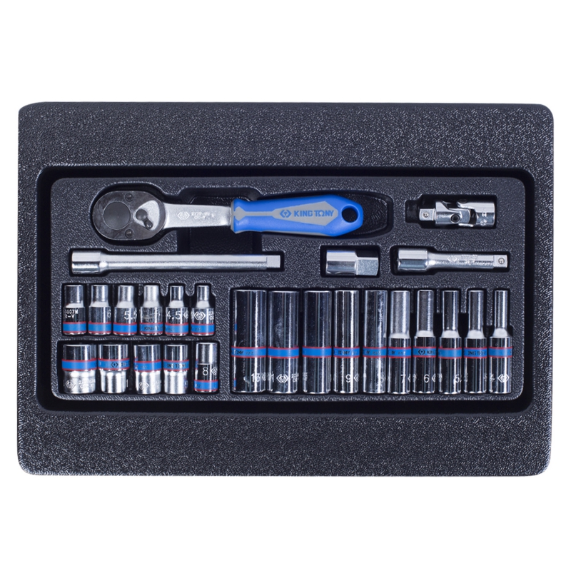 Набор торцевых головок King Tony 1/4 с принадлежностями, ложемент, 26 предметов