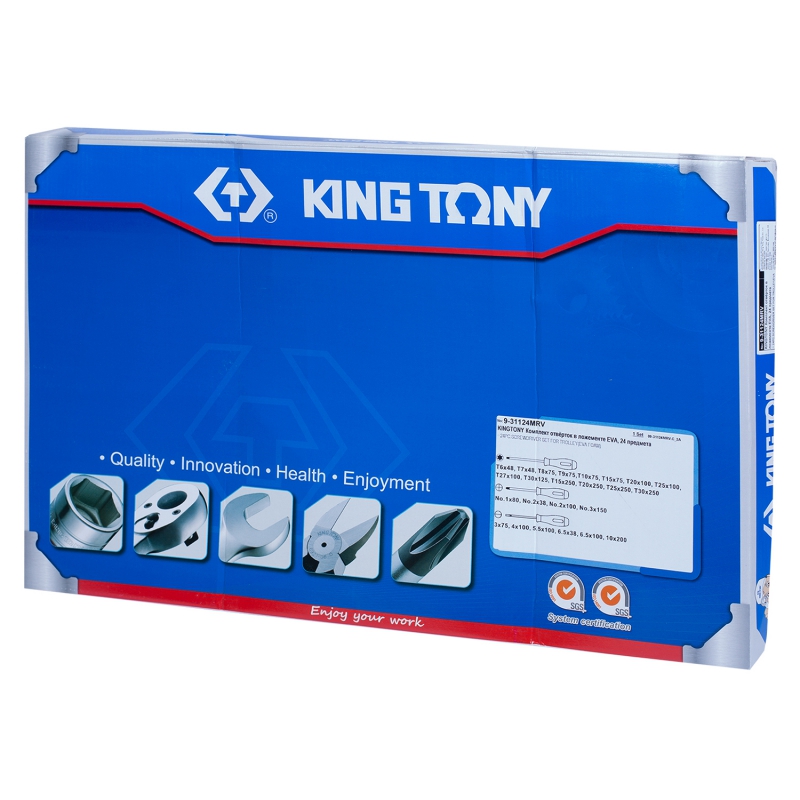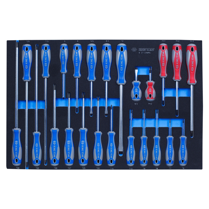 Набор известного производителя King Tony включает в себя отвертки с профилем Slotted, Phillips и TORX. Используется в автосервисах и мастерских при демонтаже крепежных элементов. Не подверженный износу и сколам стержень прошел термическую обработку. Рукоятки эргономичной формы способствуют надежному захвату инструмента. Ложемент выполнен из легкого, прочного и устойчивого к агрессивным веществам материала ЭВА. Комплект предназначен для инструментальной тележки.