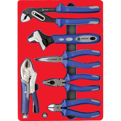 Набор МАСТАК в ложементе состоит из 6 инструментов (пассатижи, плоскогубцы, зажим с фиксатором, бокорезы, разводной ключ), применяется для оснащения инструментальной тележки и оборудования рабочего стола. Изделия используются для обслуживания автомобилей на СТО, в гаражах, сервисных центрах, а так же для ремонта различной техники в производственных условиях.