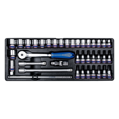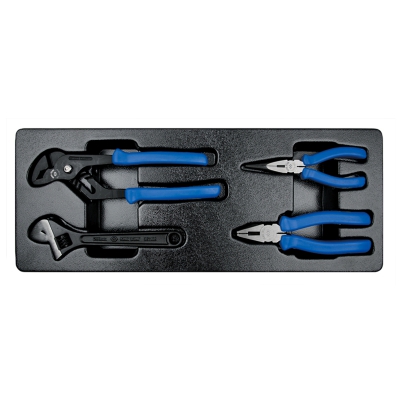 Универсальный набор инструментов с выдвижными ящиками. Предназначен для оснащения ремонтных мастерских. Включает торцевые и свечные головки, насадки, удлинители, воротки и трещотку, кардан, разводной и комбинированные ключи, отвертки и шестигранники, захват и плоскогубцы. Инструменты способны выдержать повышенные профессиональные нагрузки.