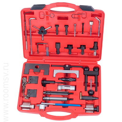 Набор фиксаторов распредвала и коленвала в кейсе. Предназначен для проведения ремонтных работ в двигателе автомобилей группы VAG. Позволяет отрегулировать фазы ГРМ. В комплекте необходимые для работ инструменты. Подходит для применения на СТО и в мастерских.