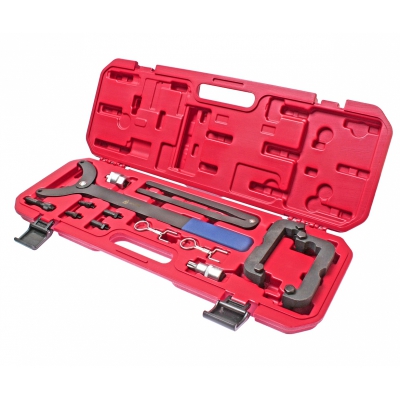 Набор фиксаторов распредвала и коленвала из 13 предметов. Предназначен для надежного фиксирования механизмов при работе с двигателем автомобилей Audi A6, Q5 2.0T, A6L 2.8 4V, 3.0Т. Инструменты изготовлены из высокопрочной стали. Оксидированное покрытие защищает от ржавчины и повреждений. Подходят для профессионального применения на СТО.