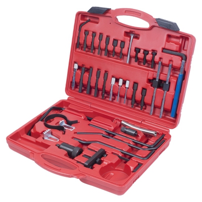 Набор фиксаторов коленвала и распредвала из 35 предметов. Предназначен для надежной фиксации механизмов при проведении работ с двигателем. Содержит необходимые инструменты для профессионального ремонта. Изделия обладают повышенной износостойкостью. Возможно применение в автомастерских.