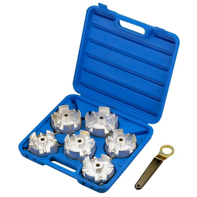 Набор съемников масляных фильтров разного диаметра. Используется в работе с двигателями грузовых автомобилей. Обеспечивает удобство снятия и установки фильтров. Размер посадочного квадрата - 1/2 дюйма. В комплекте накидной ключ и пластиковый кейс для хранения.