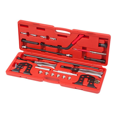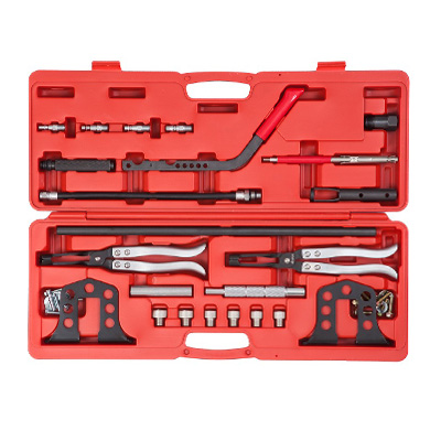 Рассухариватель клапанов МАСТАК (универсальный) - набор из 19 изделий в футляре, представляющий собой сборную конструкцию для смыкания пружин на впускных и выпускных клапанах, которая может работать на снятой или установленной головке блока цилиндров, при работе на не демонтированной ГБЦ предусмотрено подведение сжатого воздуха через соответствующий адаптер. Эксплуатируется на объектах профессионального автосервиса.