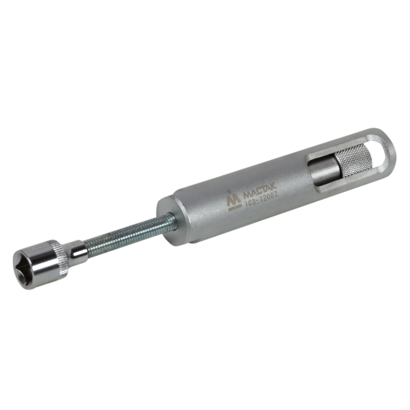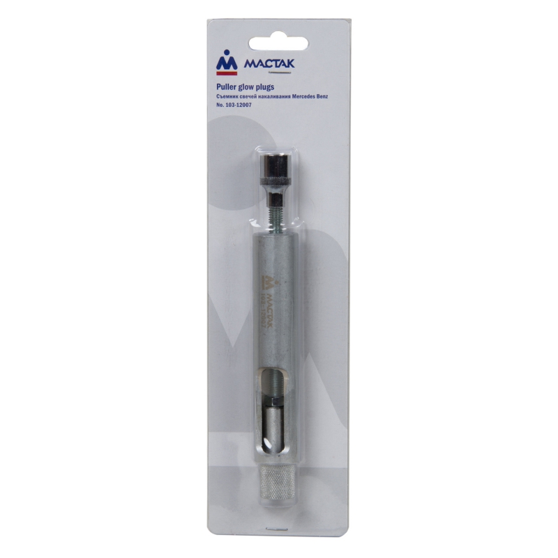 Съемник известного бренда Мастак – это профессиональное приспособление, используемое в автосервисах и на станциях техобслуживания для быстрого извлечения свечей накаливания в двигателях CDI автомобилей Mercedes Benz. Изделие выполнено из качественной высокопрочной стали.