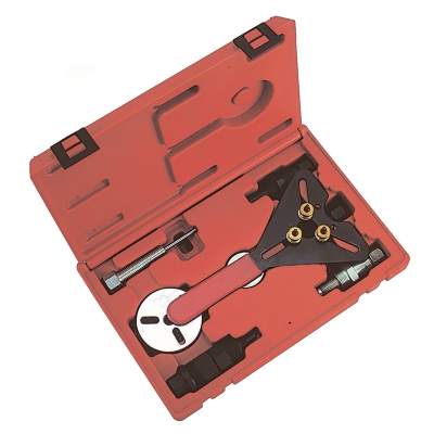 Набор для обслуживания компрессора автокондиционеров из 8 предметов. Включает необходимые инструменты для ремонтных работ в системе кондиционирования автомобилей. Позволяет произвести установку и демонтаж фрикционных дисков. Изделия способны выдержать профессиональные нагрузки в мастерских.