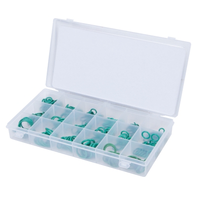 Набор колец из 270 штук разных размеров. Предназначен для вакуумирования соединения элементов линий. Используются при обслуживании автокондиционеров с хладагентами R-12 и R-134. Изготовлены из высокопрочного каучука. Обладают повышенной износостойкостью. Возможно профессиональное применение на СТО.
