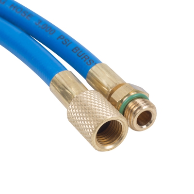 Набор шлангов (L=150 см) состоит из трёх изделий жёлтого, синего и красного цвета с металлическими адаптерами, предназначенных для заправки автомобильных систем кондиционирования фреонами различных типов. Шланги снабжены переходниками американского стандарта с трапецеидальной резьбой. Эксплуатируется в сфере профессионального автосервиса.