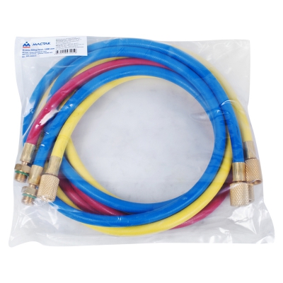Комплект шлангов (длина 180 см) состоит из трёх изделий красного, синего и жёлтого цвета с металлическими адаптерами, с помощью которых осуществляется заправка автомобильных систем кондиционирования фреонами различных типов. Шланги снабжены переходниками американского стандарта с трапецеидальной резьбой. Эксплуатируется на объектах профессионального автосервиса.