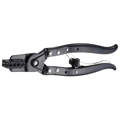 Трещоточный зажим с интервалом захвата 0-38 мм предназначается для закрепления и демонтажа хомутов на шлангах охладительных систем автомобилей. Специальная конструкция инструмента обеспечивает его удобную эксплуатацию под необходимым углом и прочную фиксацию элементов. Используется на объектах ремонта и обслуживания транспортных средств и в личных гаражах.