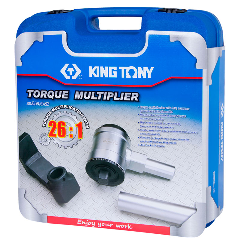 Мультипликатор King Tony используется для усиления и преобразования крутящего момента при монтаже и демонтаже резьбовых соединений. Основная сфера применения – тяжелая промышленность и ремонт грузовых автомобилей. Оснащен переключателем реверса для установки направления вращения. Также имеет градуированную шкалу на выходе. Функция anti-rebound защищает от отдачи.