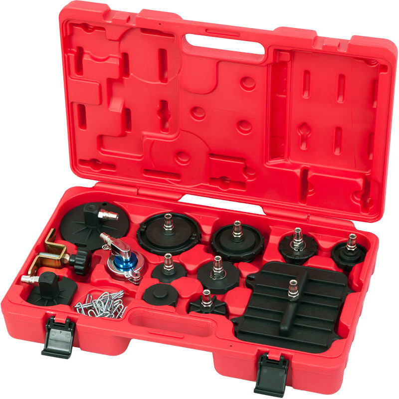 Функциональный комплект МАСТАК будет полезен в гараже или автосервисе и подойдет практически ко всем автомобилям. В наборе мастер найдет крышки-адаптеры, которые пригодятся при замене тормозной жидкости. Элементы из прочных материалов не изнашиваются при длительной эксплуатации. Легкий кейс с ручкой и замками удобен для хранения и транспортировки.